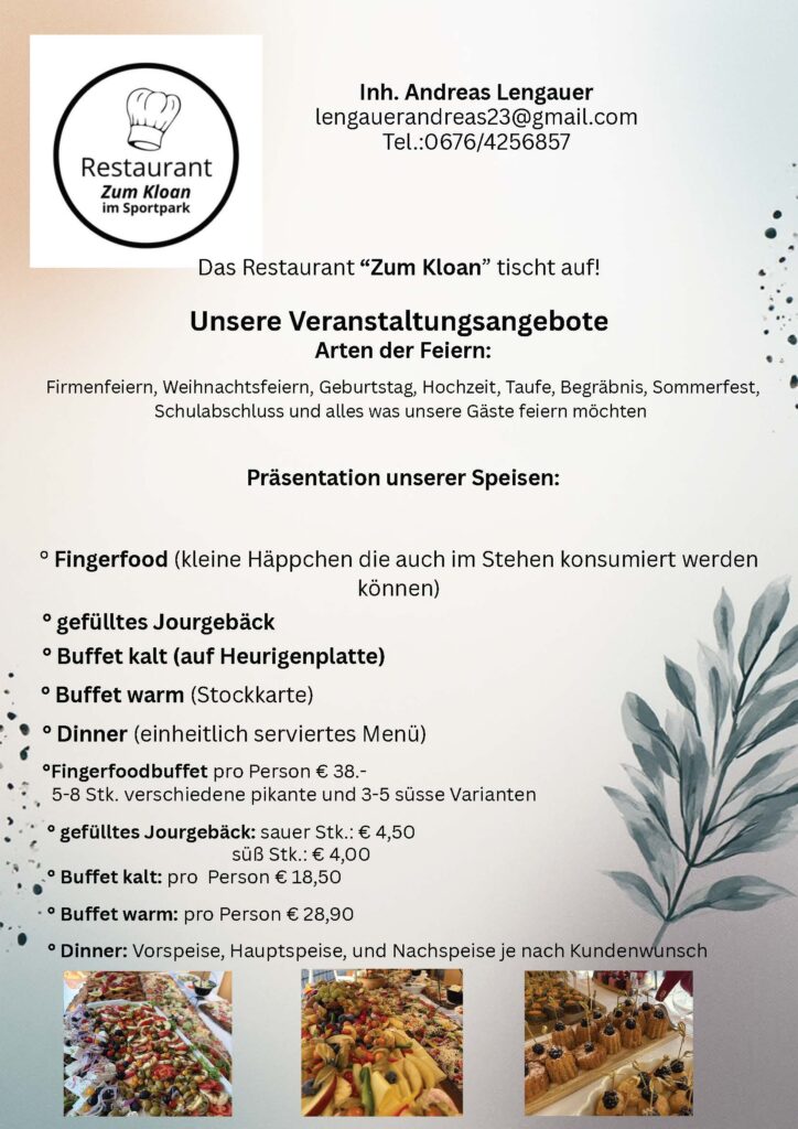 Ob Firmenfeier, Geburtstag, Hochzeit oder Vereinsveranstaltung – wir bringen den Geschmack vom Restaurant Zum Kloan direkt zu Ihnen!