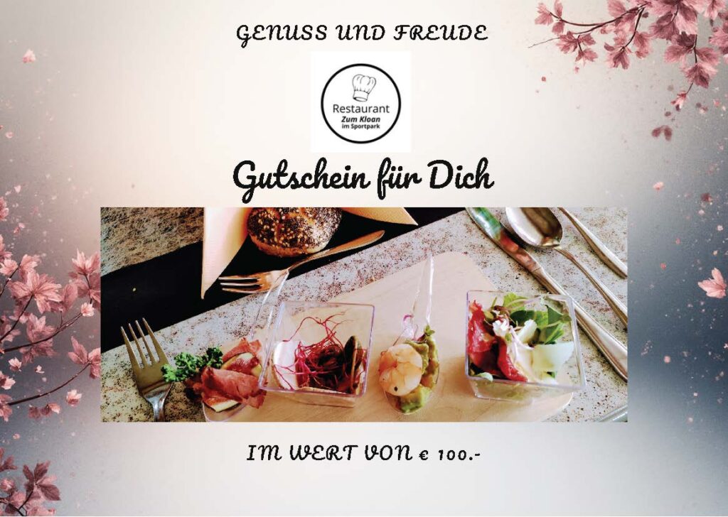 Schenken Sie Freude, Genuss und gemeinsame Zeit – mit einem Wertgutschein vom Restaurant Zum Kloan im Sportpark.